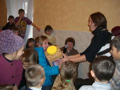 We were blessed to meet with 142 children on December 13, 2008. What a day!!! It took us 4 hours to get there first... then a wonderful meeting with games, songs and puppet theatre for the children!