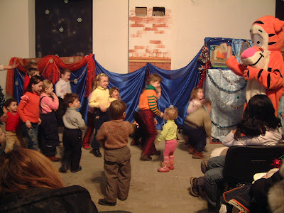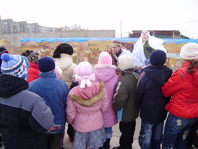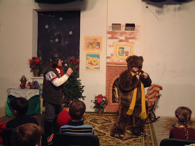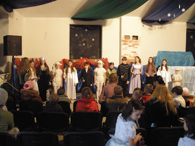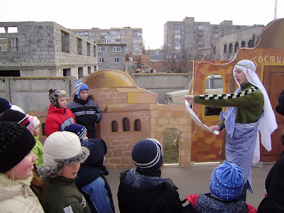 Christmas has come to Yuzhny!!! We have satrted the preparation for our big Christmas Festival long time ago.... There were about 82 people taking a great part in all preparations: drawing the inside and outside decorations that made the real Biblical atmosphere; producers, that had to write three diferent Christmas plays; actors, playing three times each day; volunteers, that helped to make 1 400 sweet Christmas presents; cooks, that would make lunch for us that we needed so much. Christmas Festival took three full days on January 8, 9 and 10 at the territory of Yuzhny church "God's house". There were three plays according to the children's age group every day during the Christmas Festival. All the actors and volunteers wearing the clothes of Biblical characters were welcoming the coming children and their parents.