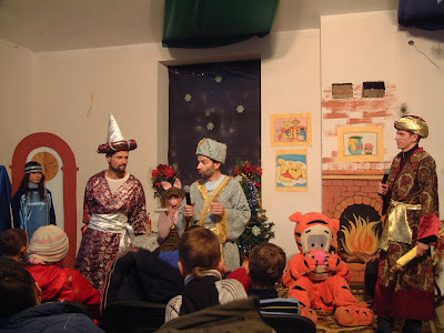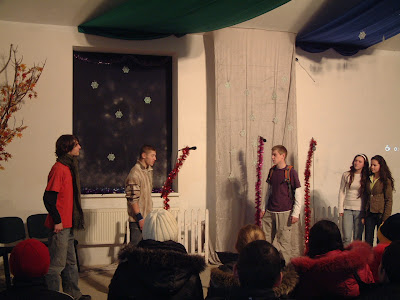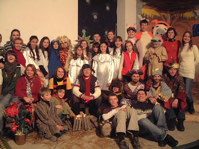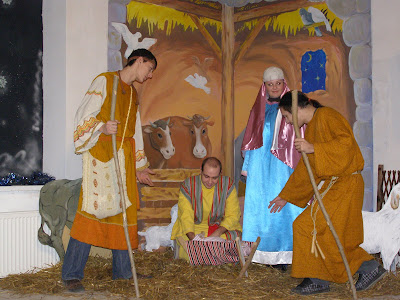 Before the entrance to the "stable" where we had the Christmas play itself there was a young man proclaiming about the old Biblical time